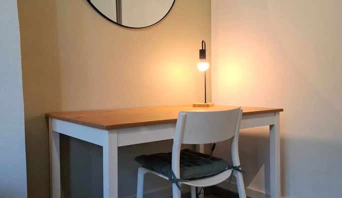 La première chambre se trouve au rez-de-chaussée : elle est pourvue de 3 lits simples et dispose de sa propre salle de bain (bain, lavabo, toilette).